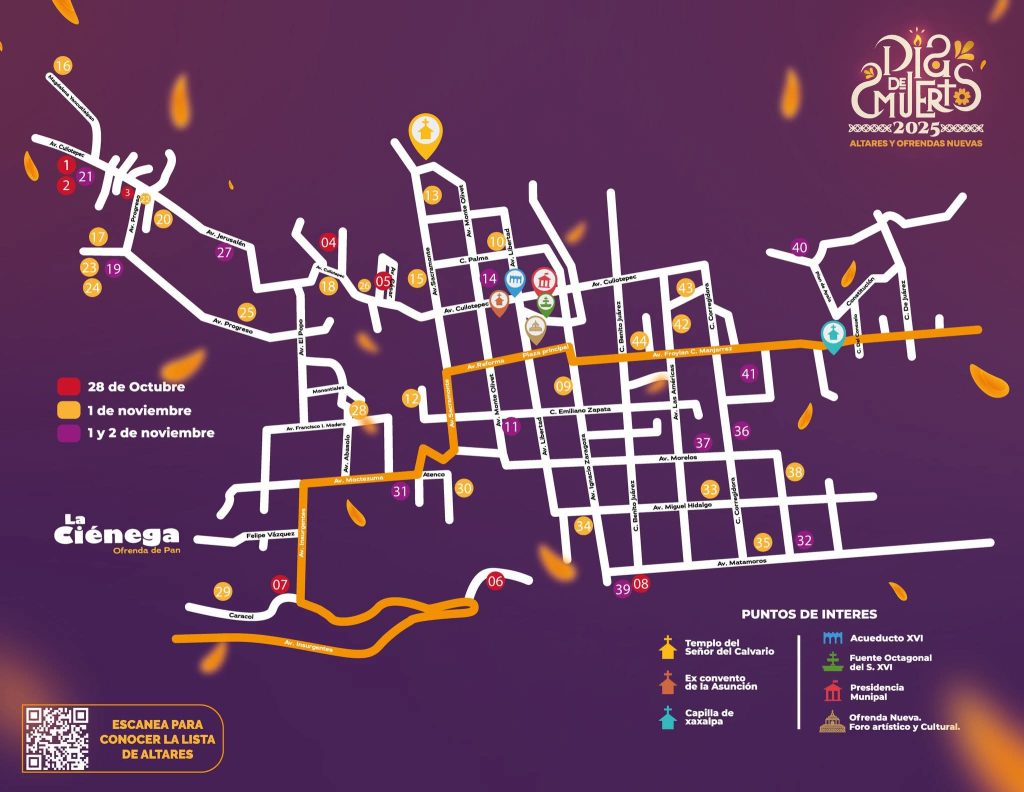 Posteriormente, del 01 al 02 de noviembre se realizará la exposición de 41 altares monumentales, donde locales y turistas podrán apreciar el arte y tradición de la elaboración de los gigantescos altares. Además, como parte de la tradición, los familiares de los fallecidos podrán compartir alimentos, como pan tradicional, mole y chocolate.