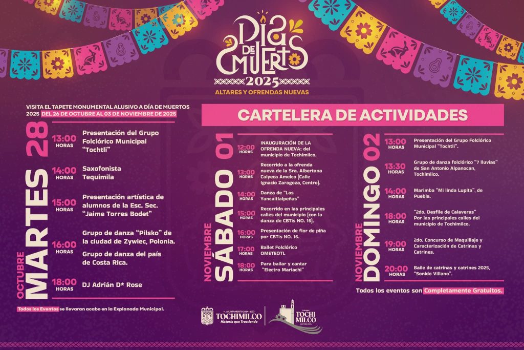 La Jefa de Área de Turismo y Cultura, Estela Analco, detalló que las celebraciones para honrar a los que ya partieron de este mundo comenzarán a partir del 28 de octubre con la colocación de 8 ofrendas dedicadas a aquellas personas que fallecieron de manera trágica.