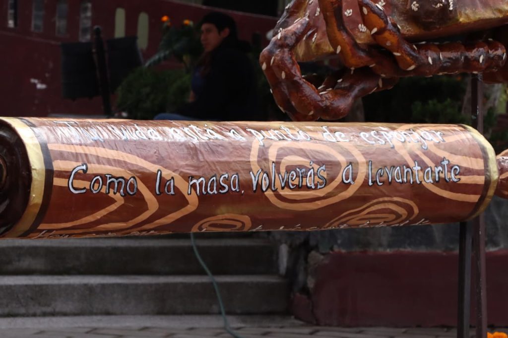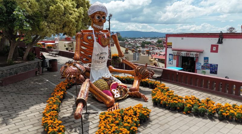 “La Catrina El Panadero” puede admirarse en la Plaza Fray Toribio, a un costado del exconvento Franciscano, como parte del recorrido que consolida a Atlixco, como la Capital del Día de Muertos.