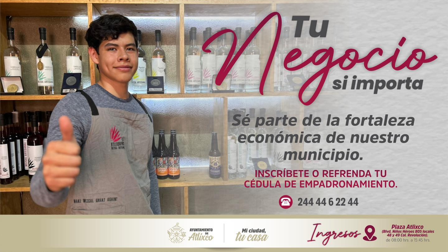 La presidenta de Atlixco, Ariadna Ayala, invitó a comerciantes establecidos a realizar la inscripción o refrendo de la Cédula de Empadronamiento correspondiente al ejercicio fiscal 2026, trámite que fortalece la legalidad y el desarrollo económico del municipio.